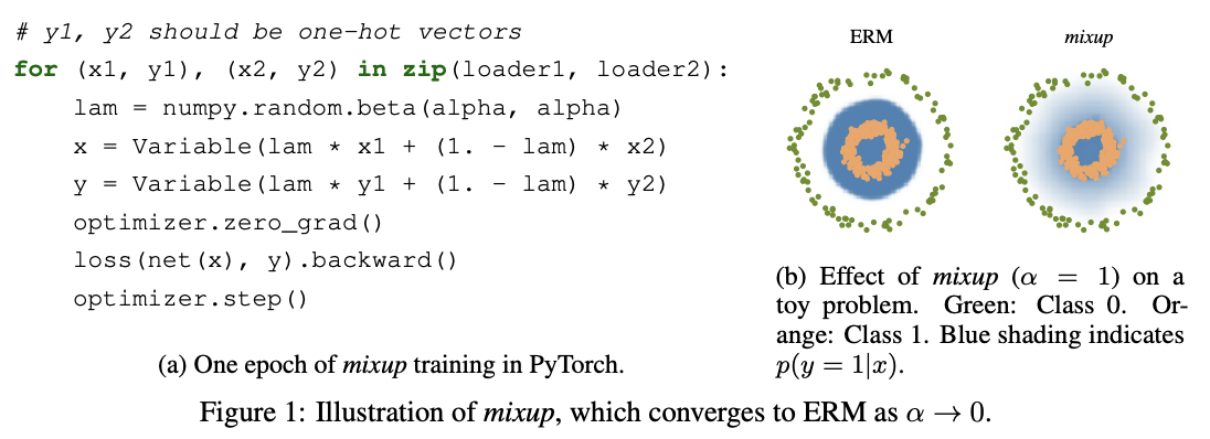 mixup 구현과 mixup의 효과에 대한 fig. 1.