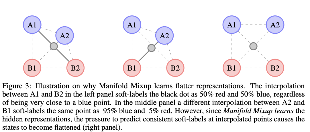 두 점 A,B에 대해서 (class가 두 개인 경우) interpolate point가 same label이면 100% confidence predict 일 것이고, different label이면 50%, 50%의 soft label을 갖을 것입니다.