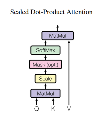 - Scale에서 key, query의 차원 \(d_k\)에 대해 \(d_k^2\)로 나누기 연산