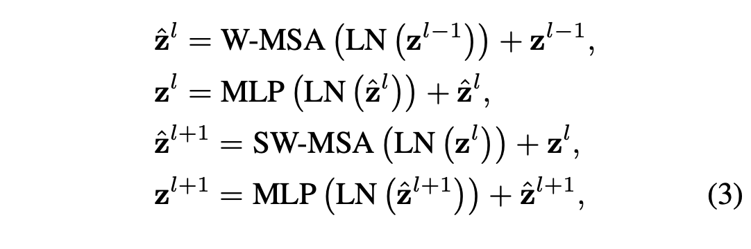 swin transformer block에서의 계산을 나타내는 equation 입니다.
