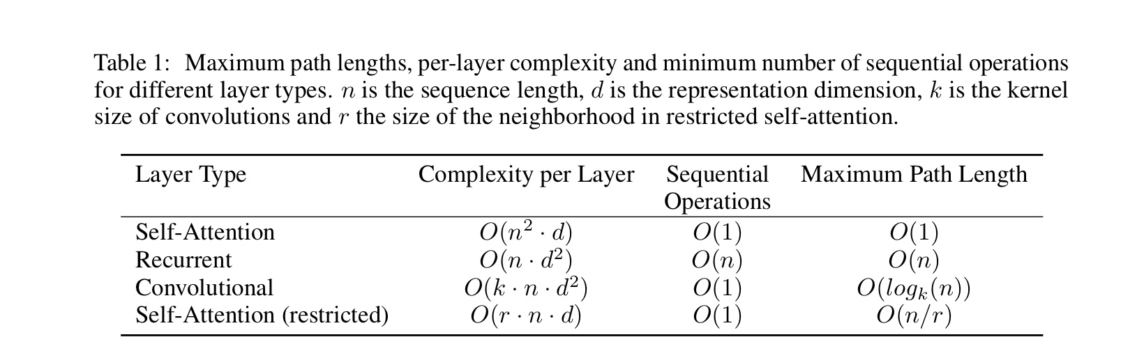- layer 당 전체 계산 복잡도