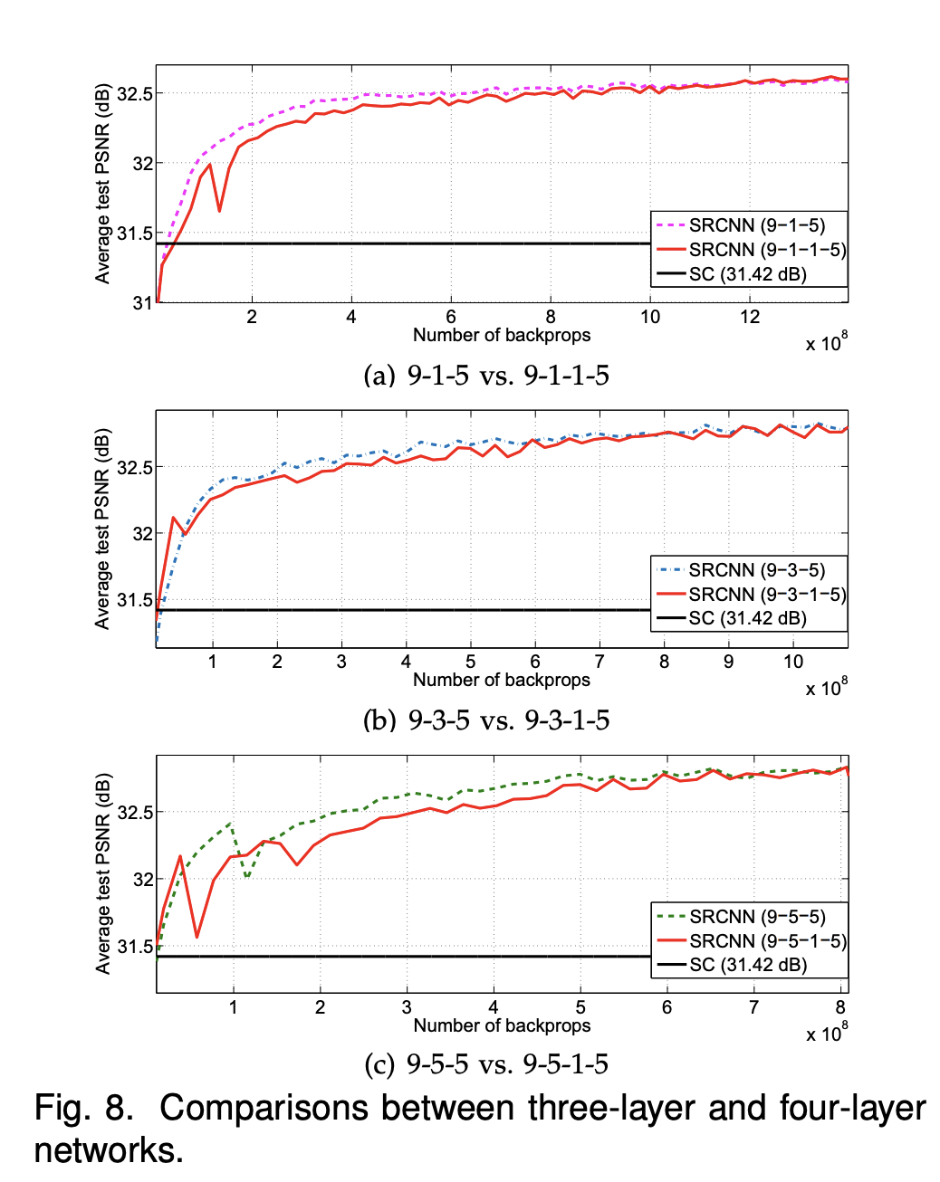 논문 에서는 architecture로 3개의 레이어를 사용하는데 순서대로 kernel size를 9, 1, 5로 설정했습니다.
