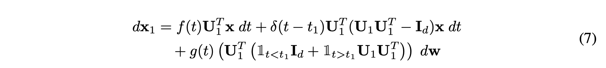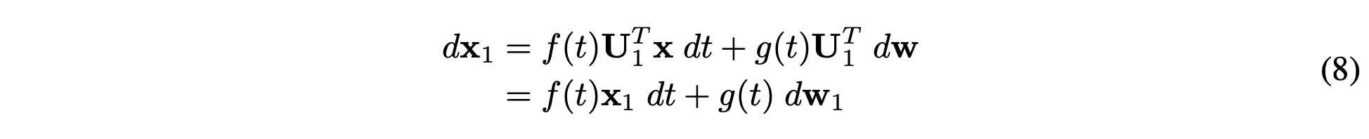 즉, full space와 동일한 SDE 식을 띔을 알 수 있습니다. (\(dw_1 = U_1^Tdw\) Brownian diffusion in \(R^n_1\))