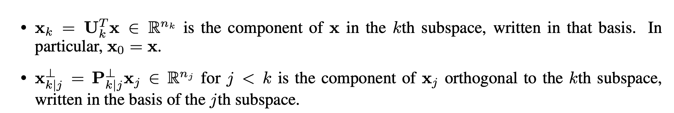 위의 \(U_k\)를 사용한 subspace를 k-th subspace라고 부르고, 이 columns는 k-th subspace의 basis라고 합시다.