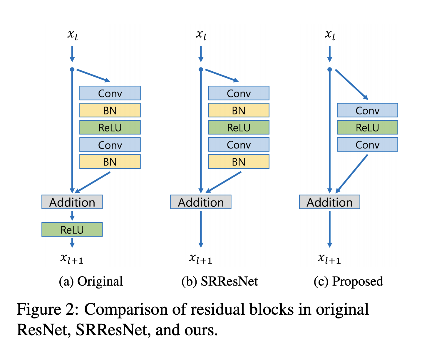 기존에 Residual block을 사용했던 SRResnet에서 Batch Normalization을 삭제했습니다.