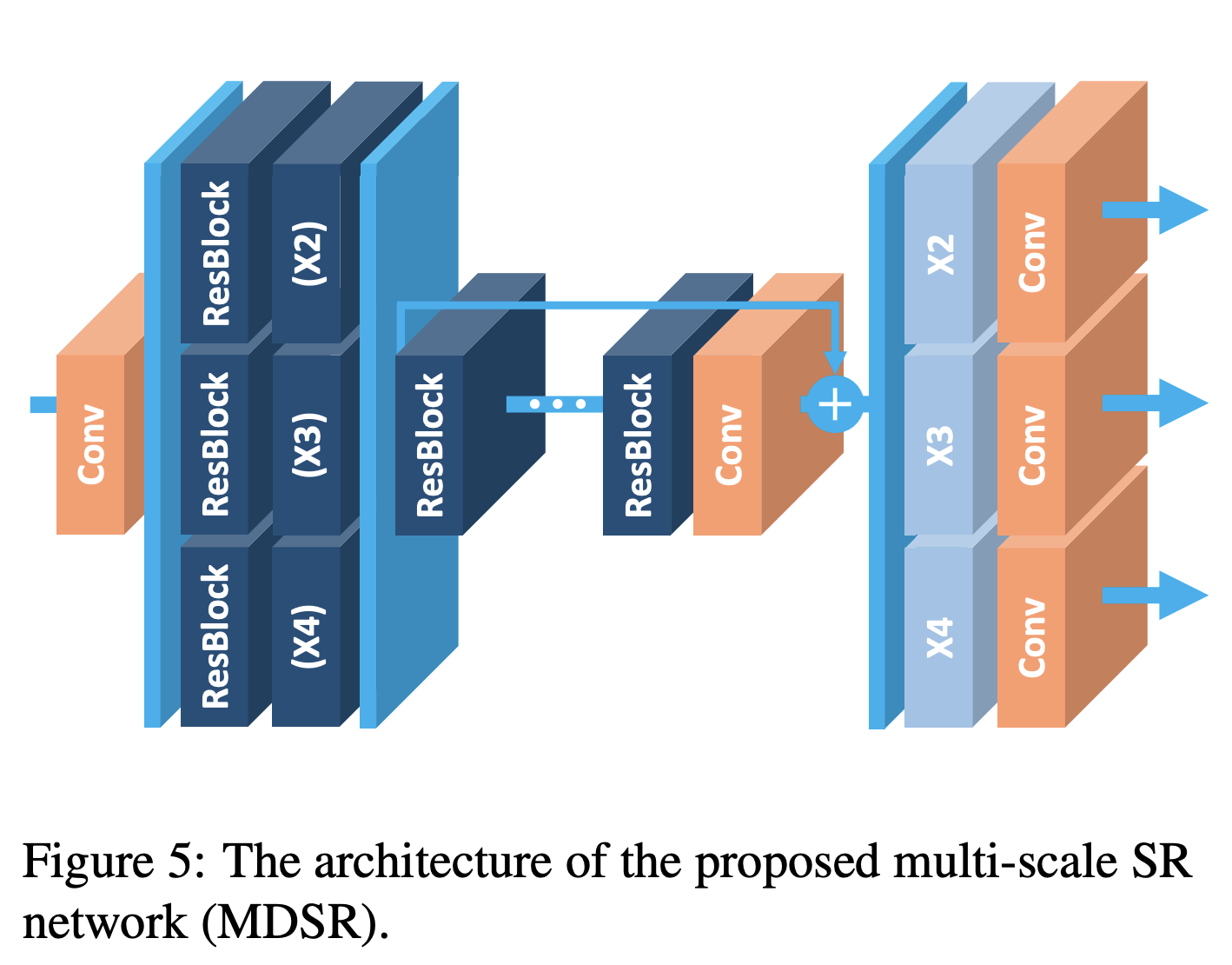 multi-scale architecture에서 multi scale SR을 위해 scale별 처리 모듈을 도입했습니다.